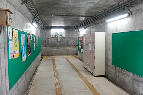 | 改札口を抜けると、正面には地下通路が通じている。 コインロッカーが設置されている。 |