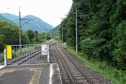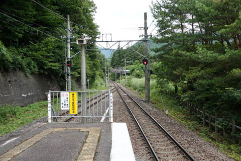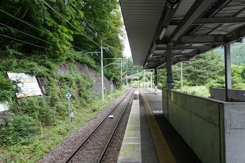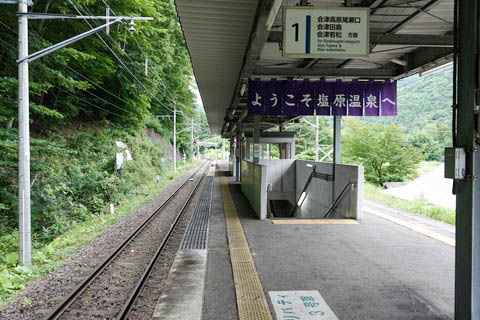 | 上り2番のりば中程より、下り会津高原尾瀬口・田島方面を見る。 | ||||||||||||||||||||||||||||||||||||||||||||||||||||||||||||||||||