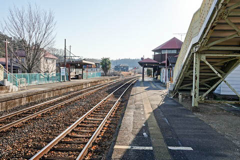 駅舎側下りホームより、駅舎を見る。 | |||||||||||||||||||||||||||||||||||||||||||||||||||||||||||||||||
