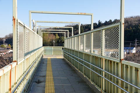 | 構内跨線橋通路。 屋根のない歩道橋タイプである。 |