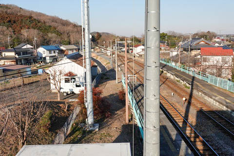 | 駅舎側下りホーム中程の跨線橋階段脇より、上り高麗川・八王子方面を見る。 | ||||||||||||||||||||||||||||||||||||||||||||||||||||||||||||||||||