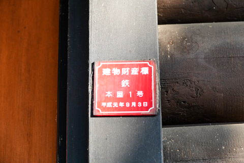 | 駅舎壁面の建物財産標。 日付は、平成元年9月3日とある。 |