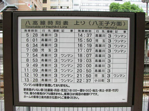 | 八高線 3番のりばの発車時刻表。 | |||||||||||||||||||||||||||||||||||||||||||||||||||||||||||||||||||||||||||||||||||||||||||||||||||||||||||||||||||||||||||||||||||