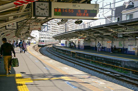 | 上り2番のりば中程より、下り川越方面を見る。 | ||||||||||||||||||||||||||||||||||||||||||||||||||||||||||||||||||
