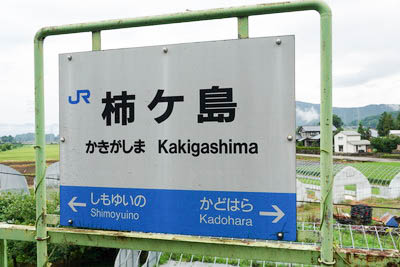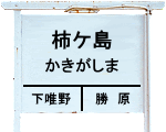 | 建植式駅名標。 駅名は、地名の”柿ケ嶋”から命名されている。 嶋と島は同義語であるが、現在の正式な地名は”柿ケ嶋”である。 駅開業前の当地は、1954年7月の合併により大野市となるまでは 福井県大野郡阪谷村(さかだにむら)柿ケ島であり、 村役場は、現在の阪谷公民館の場所にあった。 尚、1889年(明治22年)4月の町村制施行までの当地は、 大野郡柿ケ島村であり、村役場は現在の大野市柿ケ嶋9-31 付近に あったようだ。 柿ケ嶋の地名の由来は不明。 |