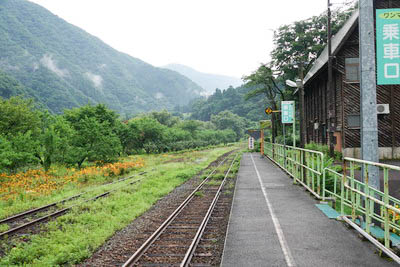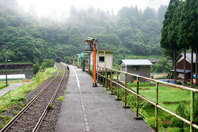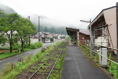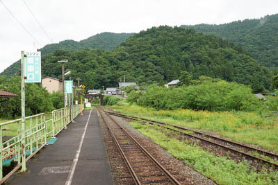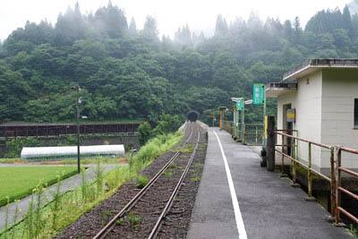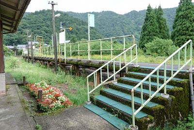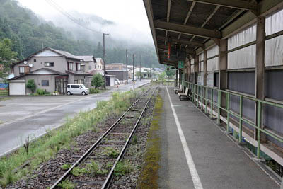 | ホーム中程の待合室付近より、下り九頭竜湖方面を見る。 | |||||||||||||||||||||||||||||||||||||||||||||||