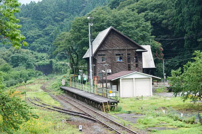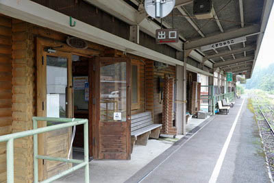 @ Wikipediaでは開業時からの無人駅とあるが、どう見ても有人駅の造りである。 右手が出改札口、左手が手荷物窓口跡である。 詳細は不明であるが 開業時は終着駅であり、駅には職員が配置されていたはずである。 写真左端の台には駅ノートが置かれている。 |