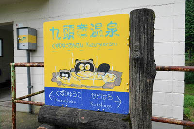 | 駅名標を模した『九頭竜温泉』の看板・・・ と思われる。 『九頭竜温泉・平成の湯』 は当駅より東へ1.2km、徒歩15分程にある アルカリ性単純温泉で、市営の日帰り入浴施設である。 列車の到着時刻に合わせて14時台まで送迎バスがあるようだ。(要確認) |