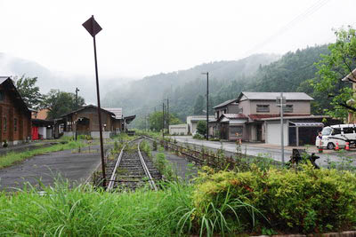 | 越美北線の線路終端部分より、九頭竜湖駅と上り福井方面を見る。 | |||||||||||||||||||||||||||||||||||||||||||||||