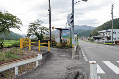 | 駅前の国道157号にて南側(上り谷汲口方面)を見る。 神海集落はこの先の国道および市道沿いに形成されている。 駅は横断歩道左手。 |