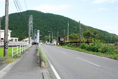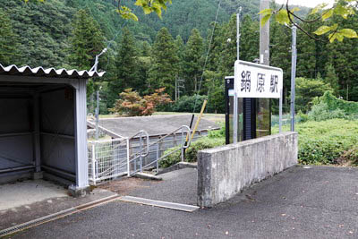 駅の北50m程の「鍋ヶ瀧踏切」脇(西側)にある、 「根尾川温泉オートキャンプ場」出入口。 コンクリートブロックが置かれ、タイガーロープが張られている。 どのような設備があり、またいつ頃閉鎖されたのかは不明であるが、 駅の南側に温泉スタンドが残っていることもあり、ここも温泉のある キャンプ場であったことが想像できる。 |