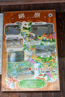 | 待合室内に掲示された観光案内板。 当地の名物は「鮎」であるが、付近にはハリヨ(針魚)という 貴重な魚の生息地もあるとのこと。 |