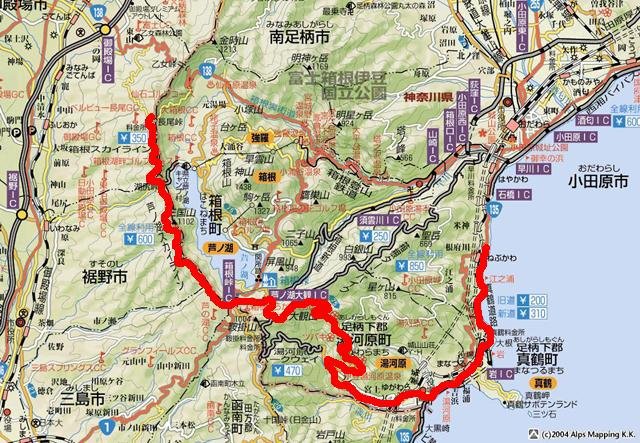 自宅 ⇒ 小田原市(R138) ⇒ 乙女峠 ⇒ 長尾峠(箱根スカイライン) ⇒ 湖尻峠(芦ノ湖スカイライン) ⇒ 三国峠 ⇒ 杓子峠 ⇒ 真鶴町(真鶴道路) ⇒ 小田原市 |