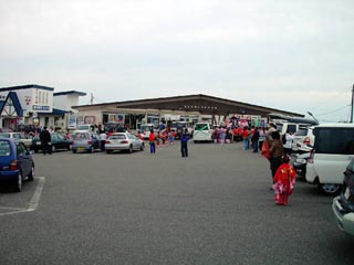 駐車場で出発の準備をしていたら、幼稚園の子供達が集まってきた。みんなおそろいの赤い着物を着て駐車場で踊り(お遊戯?)が始まった。