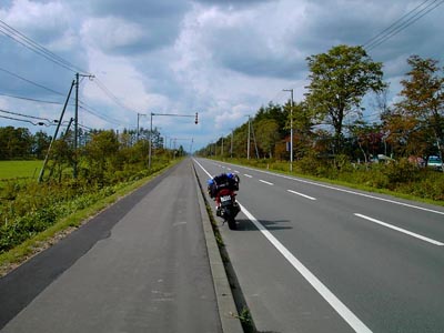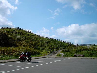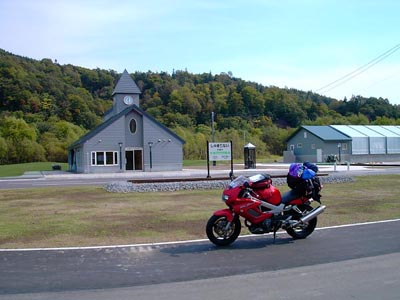 季節ならば、バイクの後ろはラベンダー畑なんだけど、さすがに10月近いと咲いてないですな。