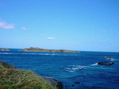 岬の沖合い1km程にある無人島の海驢(トド)島。冬場は本当にトドが集まるらしい。