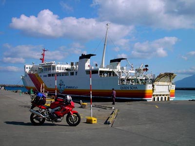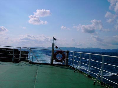 約2時間の船旅。フェリーはベンチしかないんで、横にもなれず、