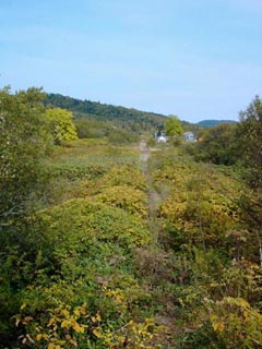 初山別(しょさんべつ)付近の道路脇に廃線跡が見られる。留萌(るもい)〜幌延(ほろのべ)間141.1kmの旧羽幌線だ。