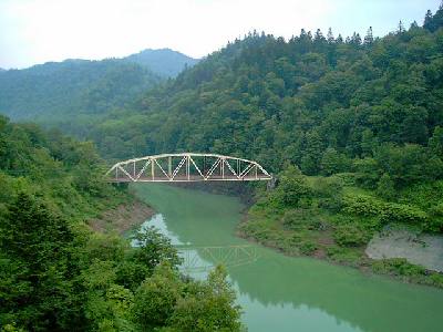 湖近くの幾春別川にかかるトラス橋は鉄道橋かな?