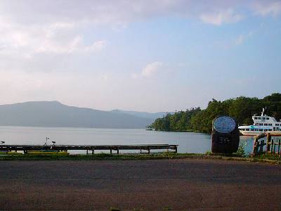 15:00。支笏湖に到着。 樽前山がきれいだ。支笏湖は最大深度360mで、秋田県の田沢湖に次いで