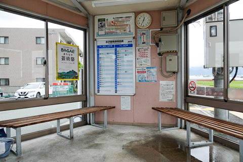 | 待合室内の様子。 出入口を始め、左右に大きく窓が採られており、室内は大変明るい。 |