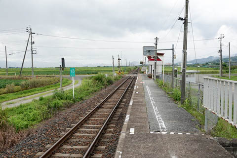 | ホーム北端付近(羽前長崎寄り)から、下り寒河江、左沢方面を見る。 線路は広大な田園地帯の中を一直線に北へ向かっている。 |