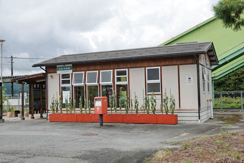 | 駅舎を別角度(南側)から見る。 構内跨線橋の昇降口部分からも出入りが可能な構造となっている。 |