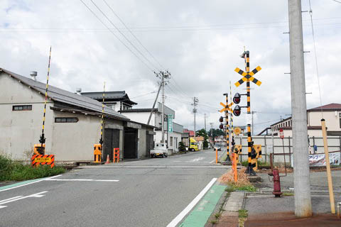 この先400m程に 一級河川の『最上川』が南北に流れている。 また、撮影立ち位置後方(東側)は、600m程市街地が続き、 その先には田園地帯が広がっている。 駅は 『南寒河江踏切』 手前右手。 |