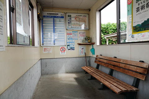 | 待合室内の様子。 木製のベンチが置かれたシンプルな待合室である。 |