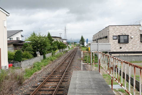 | ホーム北端(寒河江寄り)から、下り寒河江、左沢方面を見る。 | ||||||||||||||||||||||||||||||||||||||||||||||||||||||||||||||||||