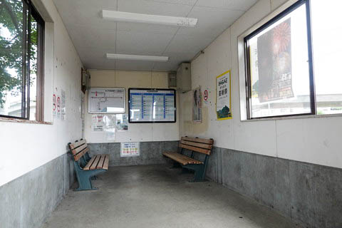 | 待合室内の様子。 木製のベンチが置かれたシンプルな待合室である。 |