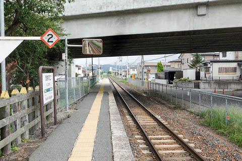 | ホーム南寄り(寒河江寄り)から、上り寒河江、山形方面を見る。 わかりづらいが、待合室壁面にトイレの扉が見える。 |