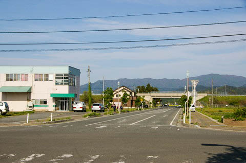 | 東口駅前から東へ延びる駅前通り。 駅舎移転前の東口は田園地帯であり、この道路も駅舎移転に伴い開通したものと思われる。 200m程先に東北中央自動車道(米沢南陽道路)の陸橋が見えるが、 ICは4km程北の 『南陽高畠IC』 となる。 |