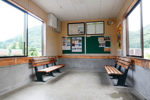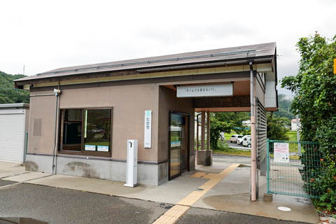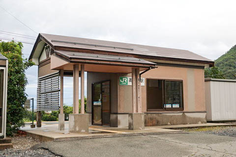 駅舎。 1999年(平成11年)に改築され、待合室の機能のみ有している。 有人駅時代には駅務室を備えた木造駅舎を有した。 |