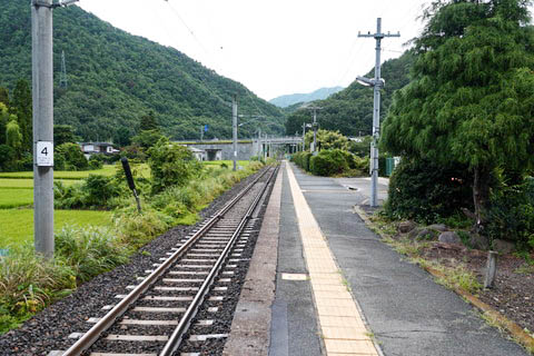 | ホーム北端(山寺寄り)から、下り山形方面を見る。 ホーム端は増設された桁式ホームになっている。 |