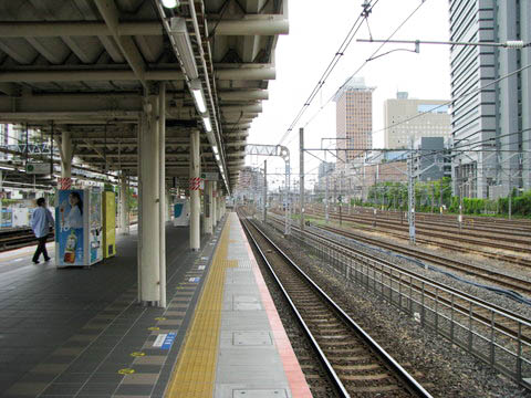| 宇キ宮線(東北本線)・高崎線下り4番のりば中程より、下り大宮方面を見る。 当駅付近は大宮操車場の構内となっており、ホーム左側には東北貨物線、 武蔵野貨物線大宮支線など、複数の線路が敷設されている。 湘南新宿ラインや、大宮-八王子間を直通運転する 『むさしの号』 などは 貨物線を走行するため、当駅(当ホーム)は経由せず通過となっている。 |