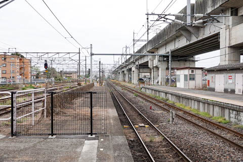 | “Œ–k–{ü‰º‚è4E5”Ô‚Ì‚è‚Ζk’[i‚‹vŠñ‚èj‚©‚çA‰º‚èV”’‰ÍEŒSŽRE•Ÿ“‡•û–Ê‚ðŒ©‚éB ‚±‚Ìæ‚Í’¼—¬ 1,500V ‚©‚çŒð—¬20,000V 50Hz ‚É“dŒ¹‚ª•Ï‚í‚邽‚ßA wŒð’¼ØŠ·x ‚Ì•\ަ‚ª•¡”Ý’u‚³‚ê‚Ä‚¢‚éB ‚©‚‚ẴfƒbƒhƒZƒNƒVƒ‡ƒ“i–³“d‹æŠÔj‚Í “–‰w‚̃z[ƒ€‘OŒã‚É‚ ‚èAƒz[ƒ€•”•ª‚Ì“dŒ¹‚Í —ñŽÔ‚ð’âŽÔ‚³‚¹ ‰wEˆõ‚ªŒð’¼ØŠ·‚ðs‚Á‚Ä‚¨‚èA\“à‚ÌM†‹@‚ɂ͒¼—¬‚Ü‚½‚͌𗬂ª ‰Áˆ³‚³‚ê‚Ä‚¢‚邱‚Æ‚ð•\ަ‚·‚é w‰Ëü“dŒ¹Ž¯•Ê•Wޝx ‚ªÝ’u‚³‚ê‚Ä‚¢‚½‚ªA ’n㑤‚ÌÝ”õEŠÇ—‚ª•¡ŽG‚È‚±‚Æ‚âAŠ´“d‚É‚æ‚鎖ŒÌ”¶‚Ȃǂ̖â‘è‚à‚ ‚èA Œð’¼ØŠ·‚̃fƒbƒhƒZƒNƒVƒ‡ƒ“‚Í 2018”Ni•½¬30”Nj1ŒŽ‚É “–‰w–k‘¤750m’ö‚Ì w“߉Ïì‹´—Àx Žè‘O•t‹ß‚ɈÚÝ‚³‚ê‚Ä‚¢‚éB @‚±‚ê‚É”º‚¢ Œð’¼—¼—p“dŽÔE‹@ŠÖŽÔ‚Í ’ʉߒ†‚É“dŒ¹‚ÌØ‚è‘Ö‚¦‚ðs‚¤ hŽÔãØ‘Ö•ûŽ®h ‚ªÌ—p‚ƂȂÁ‚½B |