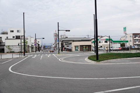 | ‰wŽÉ‘O‚̼Œûƒ[ƒ^ƒŠ[‚Ì—lŽqB ³–Êi¼‘¤j‚ɉ„‚Ñ‚é‰w‘O’Ê‚è‚Í ‰„’·276m‚Ì w“È–ØŒ§“¹235†•ˆé’âŽÔêüx ‚Å •ˆé‚ÌŽsŠX’n‚ð“ì–k‚ÉŠÑ‚‰œBŠX“¹i‹Œ‘“¹4†EŒ»Œ§“¹303†j‚ð˜A—‚·‚铹‚Å‚ ‚éB |