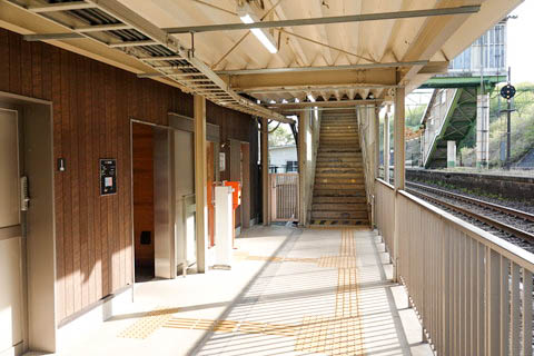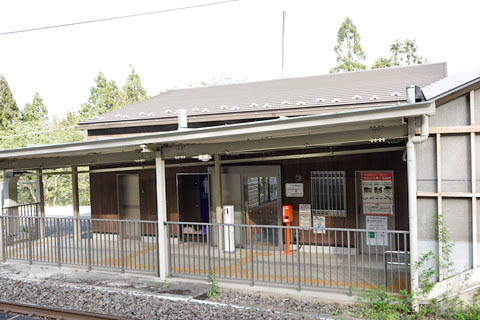| 駅舎ホーム側。 こちら側に男女別のトイレがある。 きっぷ収受箱と乗車駅証明書発行機が設置されている。 |