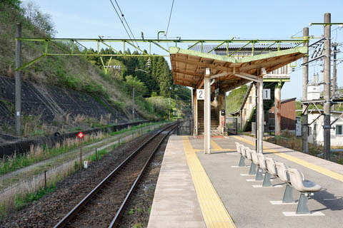 駅舎。 2019年(平成31年)2月4日に供用開始された無人駅用の駅舎である。 外壁をルート変更前の黒川橋梁の橋脚をイメージしたレンガ調とし、 地元産の芦野石や八溝材を使用して建設されたとのこと。 |