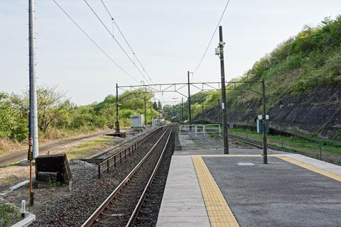 南口側出入口。 駅南側にも人家はなく、撮影立ち位置後方の小集落まで1.3km程離れている。 |