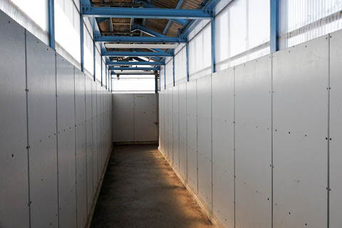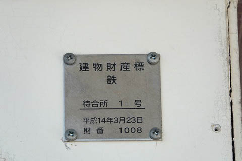 | 駅舎壁面の建物財産標。 建物名称は ”駅舎” ではなく ”待合所” となっている。 |