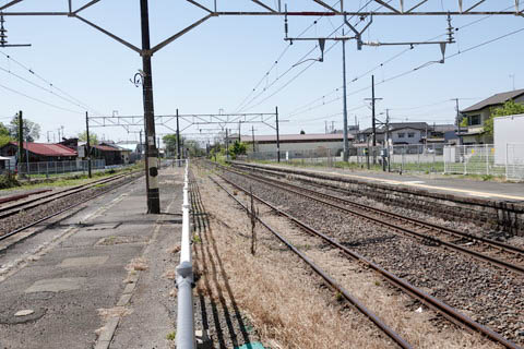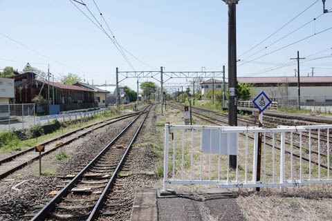 | 下り1番のりば脇には旧貨物ホームと側線・車止めが残っている。 上り新白河・黒磯方面を見る。 |