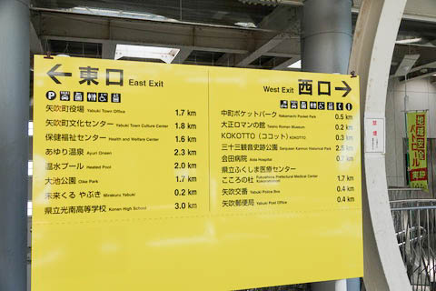 | 東西自由通路に掲げられた、東口・西口の案内板。 町村名の由来となった 『矢吹神社』 は記載されていない。(名所案内ではないので・・・) ちなみに 『矢吹神社』 は西口 0.5kmである。 |