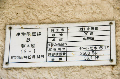 | 駅舎壁面の建物財産標。 | ||||||||||||||||||||||||||||||||||||||||||||||||||||||||||||||||||