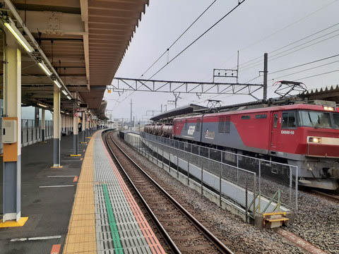 上り1番のりば中程より、上り南浦和・府中本町方面を見る。 右手の屋根はホーム間に設けられた駅本屋の屋根である。 |