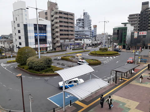 | 上り1番のりばより南口ロータリーを俯瞰する。 | ||||||||||||||||||||||||||||||||||||||||||||||||||||||||||||||||||