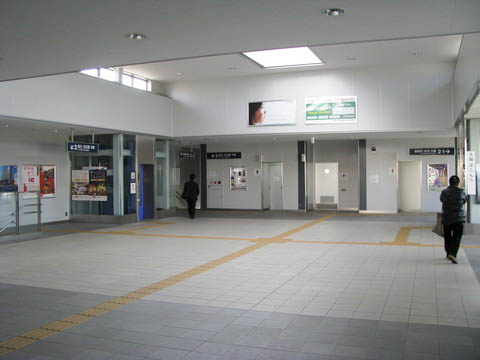 | 改札口前より、広い構内(改札内)コンコースを見る。 正面にトイレがある。 |