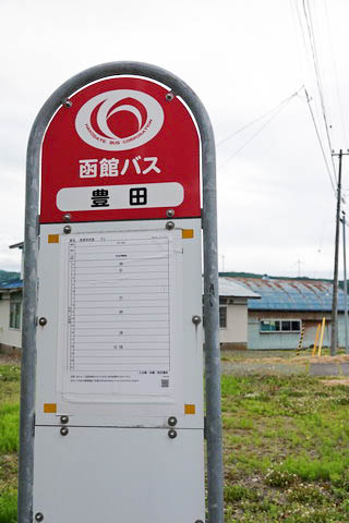 『豊田(とよた)』 停留所。 廃止された江差線のバス代替路線として、『江差木古内線』 が開設され、 当バス停も中須田駅の代替として新しく設置されている。 尚、駅西側の北海道道5号江差木古内線を走っていた函館バスの 『江差小砂子線』 は、訪問後の 2025年(令和7年)10月1日、 運転手不足や利用者減少に伴い廃止となっている。 バス停が置かれている場所は中須田地区であるが、 地域内にに 『中須田○○』 というバス停が複数あるため、 名称は 旧江差線東側に隣接する豊田(とよた)地区より命名されたものであろう。 昔の豊田地区は 『大谷地(おおやち : アイヌ語で湿地)』 と呼ばれる 農業に適さない土地であったが、多くの人々の尽力により稲作が出来るまでに なったことから、豊作を願って 『豊田』 となったそうだ。 |